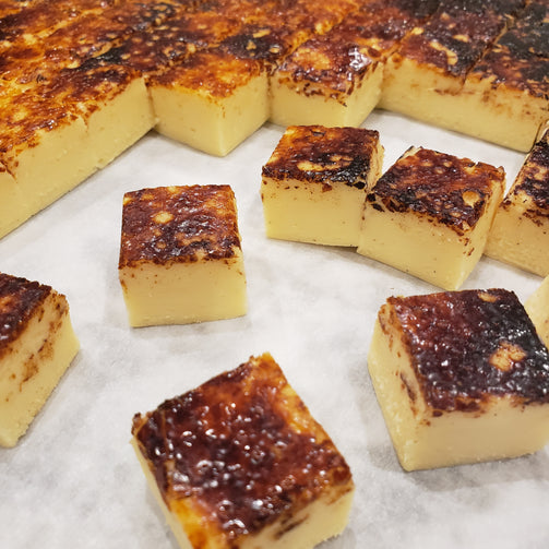 Indulge in the delectable flavors of Madagascar vanilla bean paste with our 4 oz / 130g Crème Brûlée. This creamy vanilla custard fudge features a perfectly caramelized burnt sugar topping, making it a true treat for the taste buds. Its unique taste and gluten-free/nut-free formulation make it a must-try product.