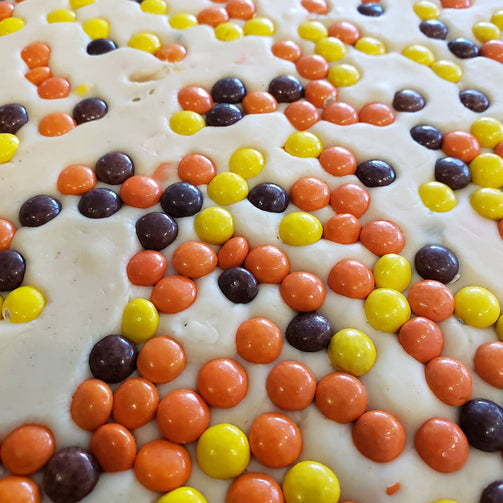 Reese's Pieces never fails to display the quintessential autumn hues. Indulge in this classic treat, complete with creamy peanut butter and the iconic candy pieces. GF